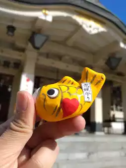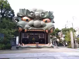 It is located at a popular tourist spot in the center of Osaka. As soon as you arrive at the gate, you will see a huge lion head with bright eyes and green face. This is a unique shape in Japan where there are many shrines.