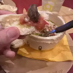 A creative pizza in the shape of a cute Toad! When you remove the pizza dough from the top, you'll find a gooey sauce inside✨