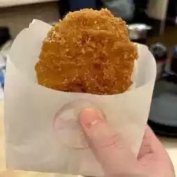 A simple croquette with a crispy batter and fluffy potato. The simple taste that brings back memories is appealing.
