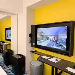 Check-in requires taking the elevator from the basement to the lobby on the 16th floor