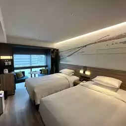 The room space is quite good, but the corridor is a bit narrow. Because there is no single bed provided this time, the luggage has to be placed on another bed.