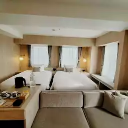 The rooms are simply decorated with a modern design, mainly in warm tones, giving a cozy, homey feel! The rooms are spacious, with a large sofa as a divider, creating a small living area. The beds are of moderate size and firmness! The bathroom is equipped with a bathtub and a bidet toilet. The room rate also includes breakfast, making it very cost-effective. I would consider staying here again the next time I visit Osaka 🥰