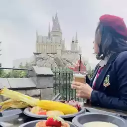 - We went in around 10am and rushed to the Three Broomsticks restaurant to find a photo spot where we could set up our camera (we used a stand case because tripods are prohibited here). After taking enough photos, we went to play the rides.