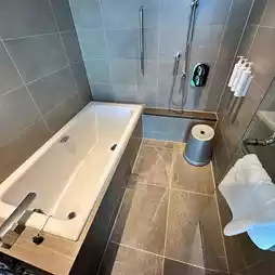 The bathroom is well stocked with mouthwash, shaving cream, toothbrushes, etc., as well as a Skin Care moisturizing set. It feels far away from the hotel in South Korea at the last stop.