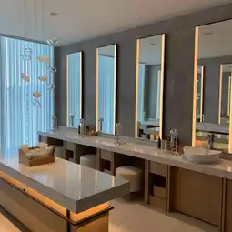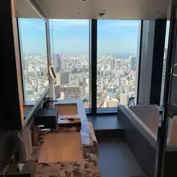 The high-end hotel 'The Osaka Station Hotel - Autograph Collection,' located on the 29th to 38th floors of JP Tower Osaka, and 'KITTE Osaka' both opened on July 31. The hotel boasts an extremely luxurious style, with large glass windows offering guests a panoramic view of Osaka. It also features a Japanese teppanyaki restaurant, a restaurant bar designed with the concept of a luxury train dining car, a large public bath, and a gym, all with excellent views.