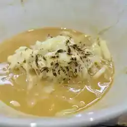 After finishing the noodles, make risotto using the rice and cheese provided with the set, savoring every last drop of the precious soup. Searing the cheese over the burner doubles the flavor of the risotto.