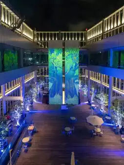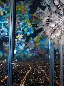 The projected projection mapping projected on the observation deck and the Osaka scenery are spectacular!
