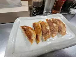 The gyoza has a crispy skin, with just the right amount of salt, and is well-cooked. The fried chicken is also hot and delicious!