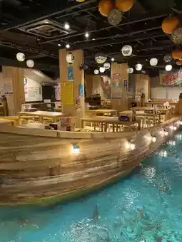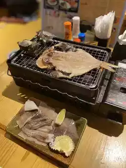 Jumbo Tsuri-bune Tsurikichi is a seafood izakaya located right in the middle of Shinsekai. You can eat the seafood yakitori hot and fresh because you grill it yourself. Another great thing about it is that you can choose only the ingredients you want to eat, such as overnight dried splendid red snapper, overnight dried squid, and turban shells. You can fish inside the restaurant without worrying about the heat or the season, so it's also recommended as an experience-based restaurant.