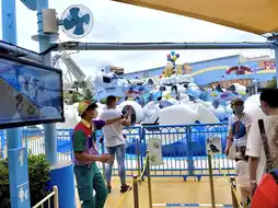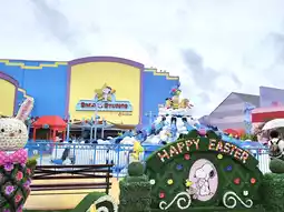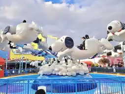 This is a Snoopy theme ride for both children and adults to ride together. The ride features a Snoopy character, and can seat 2 people/1 character. The ride rotates continuously. You can control the lever to raise or lower it. Most families like to ride this ride because both children and adults can ride it. The waiting time is about 60 minutes and you can actually ride it for about 5 minutes.