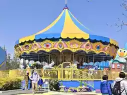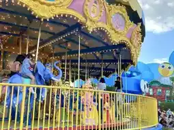 This is a carousel ride located in the Wonder Land zone of Universal Studios Japan. It is a ride that both children and adults can play. The waiting time is not long, about 5 minutes / round. The ride has various animal statues for children to choose to sit on the one they like. When the machine is turned on, it will spin around. At night, the carousel is beautifully lit.