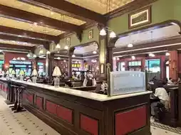 This is a European restaurant located in the New York area, inside Universal Studios Japan. The shop is decorated in a European style, with an American flag in front of the shop. Inside the shop, there are tables and bar seats. You have to make a reservation before eating. The waiting time is about 60-90 minutes. When it's your turn, the shop staff will call to inform you. We can walk and do other things to kill time. No need to stand and wait.