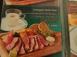 The menu focuses on steak, fried food, salad. Recommended menus are fried onions + Suntown Island sauce, Fish & Chips, Shepherd Pie, Finnegan's Steak Meal. The food prices are quite high, but the taste is delicious.