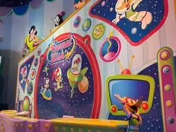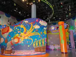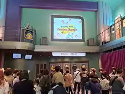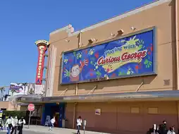 This is a children's zone in Universal Studios Japan. This building is themed after the popular cartoon character George, a monkey. Inside, there are coin-operated rides and a theater. The plays are shown in rounds on a stage with glass partitions, allowing viewers to sit and watch up close. Sometimes, you'll meet George, who comes out to greet his fans in front of the building. You can ask to take a photo and shake his hand.