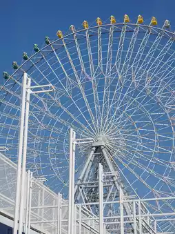 The Tempozan Ferris Wheel, at a towering 112.5 meters, is a true wonder of Osaka. A ride on it takes just 15 minutes, offering a complete circuit, offering panoramic views of the Ikoma Mountains, the Akashi Kaikyo Bridge, Kansai International Airport, and the Rokko Mountains. Its 60 unique gondolas, including eight glass-fronted cabins, bring the dreamlike experience of floating through the air to your fingertips.