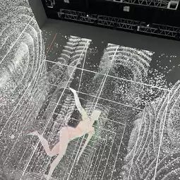 Daito Manabe's new work 'Continuum Resonance' is an autonomous piece installed in each space of 'VS.' that shares and influences mathematical algorithms, music programming, and 3D architectural data. This time, using the groundbreaking 3D acoustic software 'PolyNodes' co-developed by Manabe and Sinan Bokesoy (artist/composer/Xenakis researcher), the space itself is expressed as an audio-visual resonance space that fluctuates three-dimensionally.