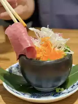 You can choose between beef tongue or roast beef, and top it with green onion salt, grated yam, sea urchin and egg, or salmon roe. ✨