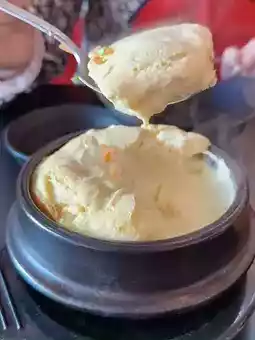 The jukkumi set meal comes with jukkumi, gyeranchim, and flying fish roe bibimbap.