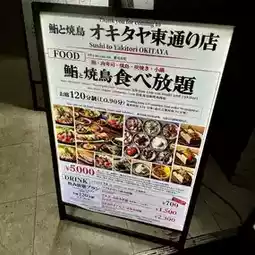 90 types of sushi, including yakitori, meat sushi, and seafood sushi, available for 120 minutes. An additional ¥500 applies on Fridays, Saturdays, and Sundays.