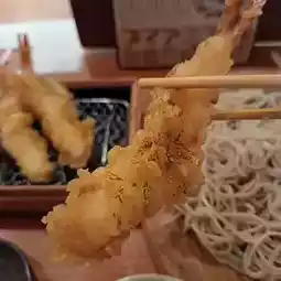 There are many restaurants on the sixth floor of Namba Parks Shopping Center that are open until 10 pm. One of them is Shinobuan, which insists on using domestic buckwheat flour and has soba noodles handmade by craftsmen every day. Come at 8pm and you won't have to queue up to get a seat. There are about 20 seats in the store. The wooden tables, chairs, decorations and lighting make the whole store full of warmth. I ordered the shrimp tempura with cold soba. The cold soba was placed on a wooden round plate and covered with a thin layer of crispy tempura. There were 3 fried shrimps, pumpkin, radish, and eggplant. It was my first time to eat radish tempura, and the radish was stewed. The soba noodles made from 28-ounce buckwheat do not have a strong taste and have a good chewiness, especially when dipped in the soup made from bonito and kelp, which is refreshing and not greasy. Buckwheat flour itself contains a lot of B vitamins, which can promote blood circulation and restore fatigue, and has the effects of anti-oxidation and regulating immune function. When traveling abroad, you can choose buckwheat noodles for dinner as a wonderful end to the day!