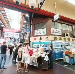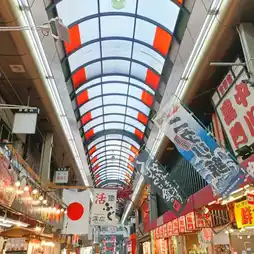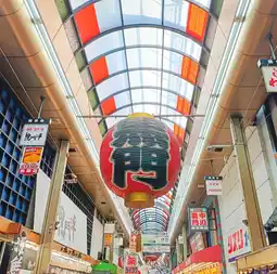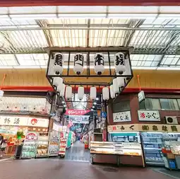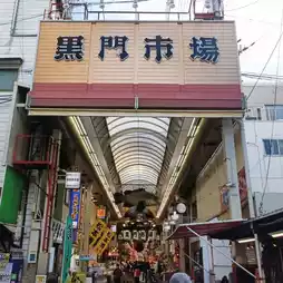 Kuromon Market is a shopping street in Nihonbashi, Osaka, with about 180 stores stretching from east to west
