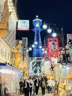 It is a tall tower in the Shinsekai district, a symbol of Osaka Prefecture, Japan. It is a 103-meter-high tower. The ticket price is 1,200 yen per person. If you have an amazing pass, you will get free entry. To enter, you must take the elevator to the rooftop, which offers a 360-degree view of Osaka. In addition, there is a museum here that tells the history of the origin of Glio, a famous Japanese snack. There is also a 3-story slide for tourists to play.