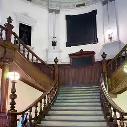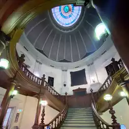 In addition to admiring its Greek temple-like design on the front, there are also many exquisite Western architectural designs inside, including wooden stairs and stained glass in the ceiling dome, all of which are full of historical atmosphere.