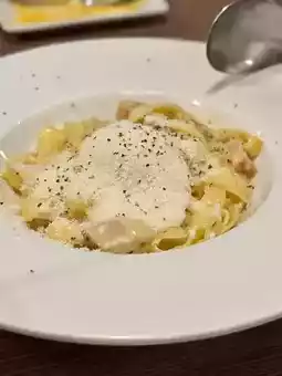 As the name suggests, this carbonara is rich and creamy, with large chunks of bacon.
