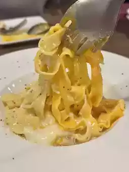 The chewy fettuccine pasta was delicious with the hot sauce 💗