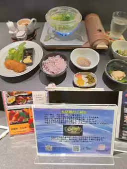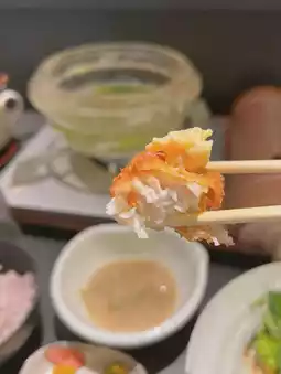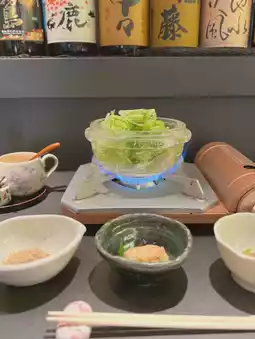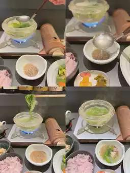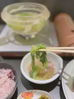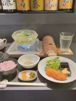 🍚《Kitashinchi, Osaka》 It's been a while since I've been to Kitashinchi~✨I went to a restaurant where you can eat a rare hot pot called crystal hot pot🥰✨I'm happy that I can eat hot pot by myself! Apparently the hot pot is made of real crystal😳The ingredients are lettuce, white onions, and chicken🥬🐓It's served in a soup stock mixed with plenty of sesame seeds🤤It seems to have a detox effect, so it's good for beauty too~✨In addition to the hot pot, there are two small dishes, salad, fried food, rice, and even dessert😳The fried white fish is crispy and comes with tartar sauce😍(The fried food may change daily🤔)The small dishes are also delicious, and the rice is five-grain rice? I'm also happy! All this for 1500 yen is a great value✨🙌On this day, there were several other female customers besides me◎It seems that there are many regulars, so it's a great hidden gem💯✨It's healthy, but it fills you up! I found a great restaurant~☺️ It's great that there are so many restaurants with high satisfaction rates for lunch in Kitashinchi🥰 ——————————✔︎ Japanese and Western Shunsai Kitashinchi Tenri.