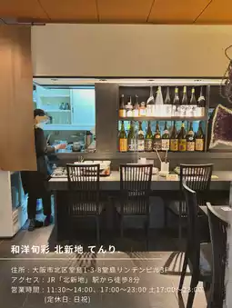 Address | 3F Dojima Linden Building, 1-3-8 Dojima, Kita-ku, OsakaOpen | 11:30-14:00, 17:00-23:00 Sat 17:00-23:00Closed | Sundays and holidaysAccess | 8 minutes walk from JR Kitashinchi Station