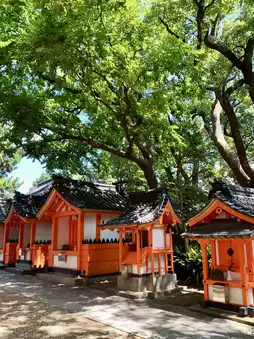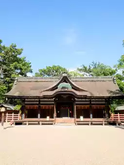 The main building of the shrine is built in traditional Japanese style and is surrounded by tall trees, creating a mysterious and quiet atmosphere where visitors can worship in peace and pray for peace and happiness. 🙏