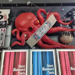We went to Dotonbori at midnight before the subway closed. The lights were off and there weren't many people around, which allowed us to take photos in front of the shops. You could easily tell what each shop was selling, and it was incredibly beautiful. We spent 2 hours here, walking around until we reached the Glico sign at 1 AM. There were still people walking around, mostly teenagers. Despite the late hour, we felt safe because this is Japan.