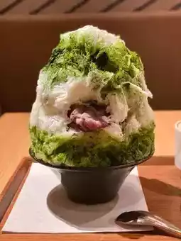 You can top your shaved ice with ice cream or soft serve ice cream, and there are many other interesting things!
