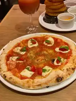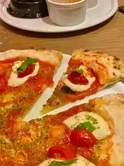The pizza baked in an authentic pizza oven is crispy and fluffy and chewy inside 💕