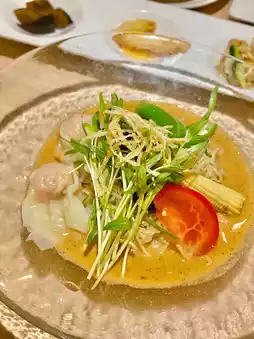 ・Shrimp Wonton and Summer Vegetable Cold Noodles (Sesame)