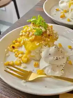 Topped with homemade corn cream, grilled corn, natural cheese, and black pepper.