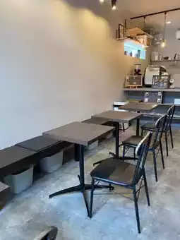 The cafe has high ceilings, is bright, and has a spacious feel. ✨️