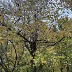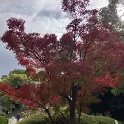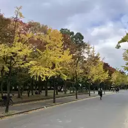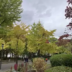 In late November to early December, you can enjoy the autumn foliage in the park. However, most of the trees are not maples, so the colors are more yellow and orange.