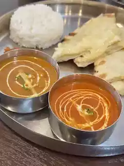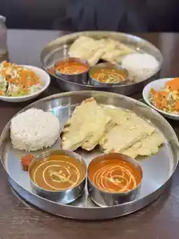 The C lunch set is a hearty set with salad, cheese naan, 2 types of curry (choose from chicken, shrimp, vegetables, or keema egg) + tandoori chicken + drink💗