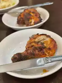 The tandoori chicken was served hot and fresh.