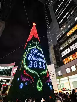 A huge Christmas tree about 10 meters tall that shines in various ways like a sparkling kaleidoscope🎄