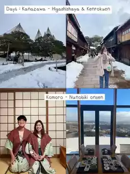 🚦Day 6: Kanazawa -> Komoro (Nagano Prefecture)‣ Walked around Higashishaya and Kenrokuen Garden‣ Traveled to Nunobiki Onsen and soaked in a hot spring in the snow