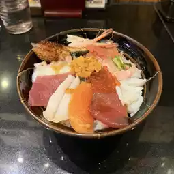 🍱Assorted raw fish rice (Kaisen Don): A variety of raw fish such as salmon, tuna, sweet shrimp, and scallops are served with sweet Japanese rice.