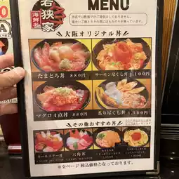 Wakasaya Nankai Namba is a famous Japanese restaurant located in the Namba area of Osaka. This restaurant is famous for its various types of raw fish rice (Donburi), which are popular among locals and tourists who want to enjoy fresh raw fish at a reasonable price.