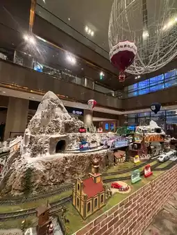 The Christmas at Hilton Osaka featured a diorama with a German-made train model running through a townscape inspired by winter Europe. The town at the foot of the snowy mountain was decorated for the Christmas season with trees and Santa Claus. It was adorable. You could feel the Christmas spirit of a small foreign country.