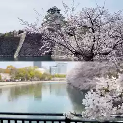 The castle is surrounded by cherry blossoms, offering magnificent views of the canal. A must-visit spot in Osaka!