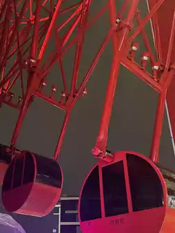 Dusk: Around 6-7pm, the sky starts to darken, great to see the sunset and cityscape! It's so romantic to enjoy the sunset while riding the Ferris wheel