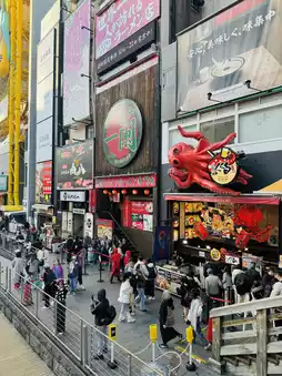 • Dotonbori & Namba – Visit Osaka’s liveliest pedestrian street, take photos at the Glico sign, and try takoyaki and okonomiyaki
