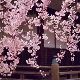 Get off at Daigo Station and walk about 10 minutes to the temple entrance. Weeping cherry trees cascade like a waterfall in front of the five-story pagoda. At dusk, lanterns light up, and the cherry blossoms reflect with the gold leaf of the Buddhist hall.